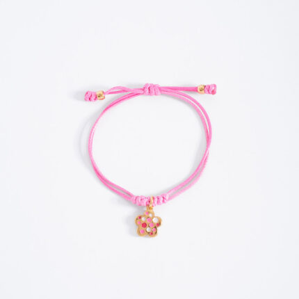 PULSERA AJUSTABLE EN BAÑO DE ORO CON CORDON COLOR LILA