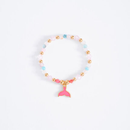 PULSERA AJUSTABLE EN BAÑO DE ORO CON CORDON COLOR ROSA CON PINTURA EN TONO ROSA
