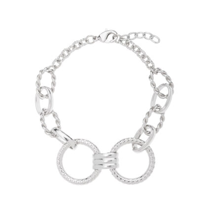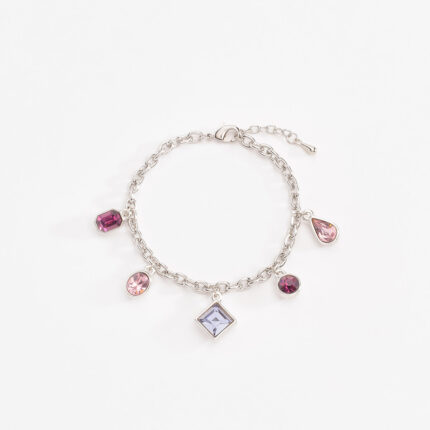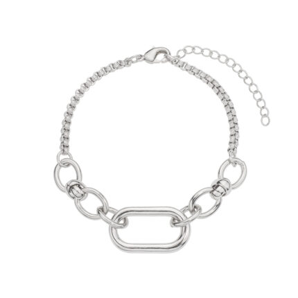 PULSERA EN BAÑO DE PLATINO DE 18 CM MAS 2 CM DE EXTENSIÓN CON PIEDRA COLOR HUMO