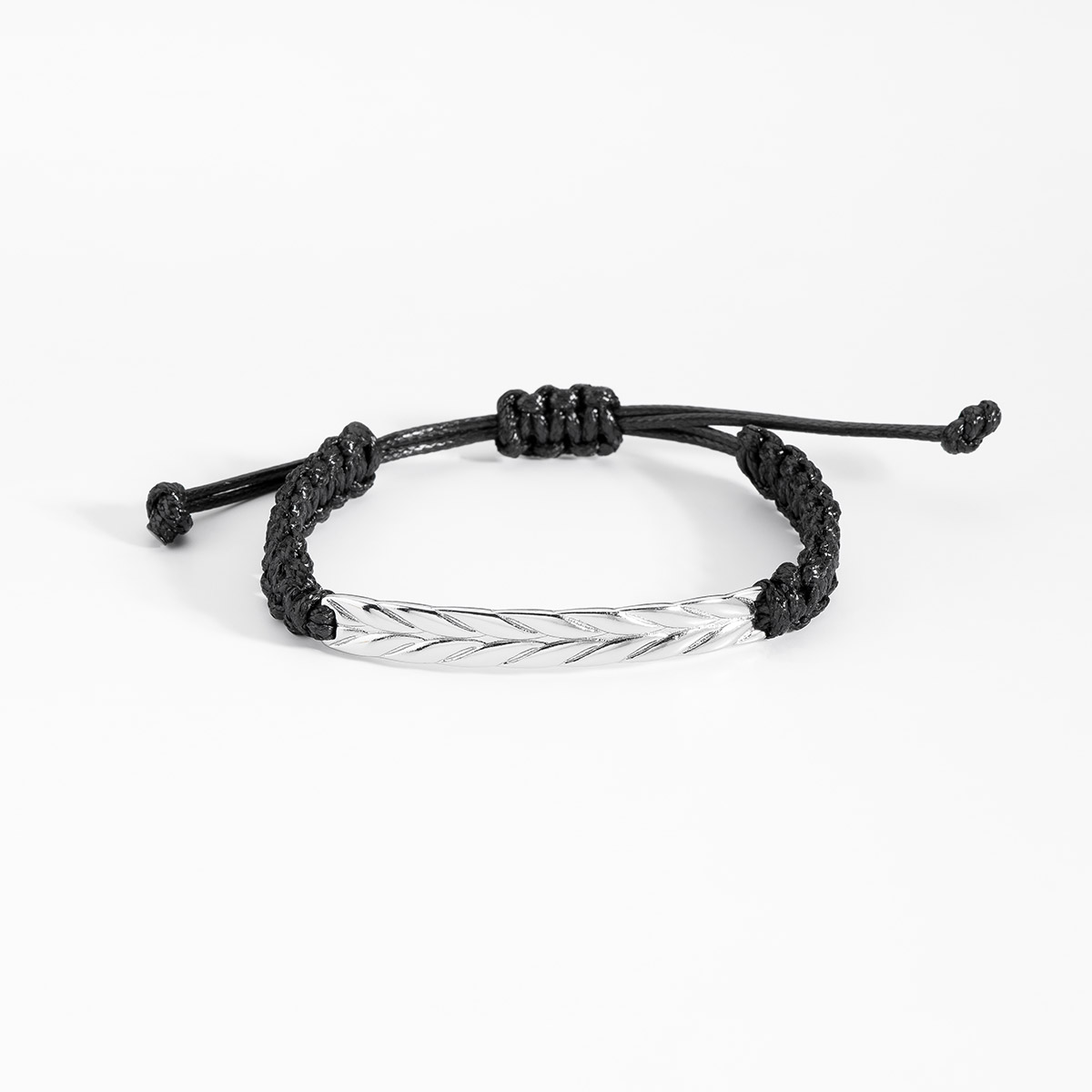 PULSERA DE CORDÓN COLOR NEGRO EN BAÑO DE PLATINO AJUSTABLE