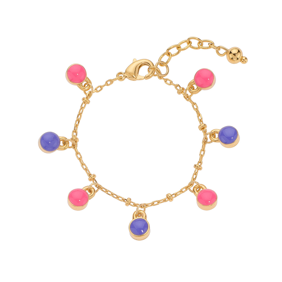 PULSERA EN BAÑO DE ORO DE 13 CM 2 CM DE EXT. CON ESMALTE COLOR MORADO Y ROSA