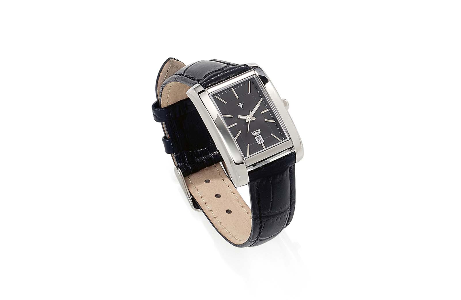 RELOJ CON CORREA DE PIEL COLOR NEGRO, CARATULA PLATEADA