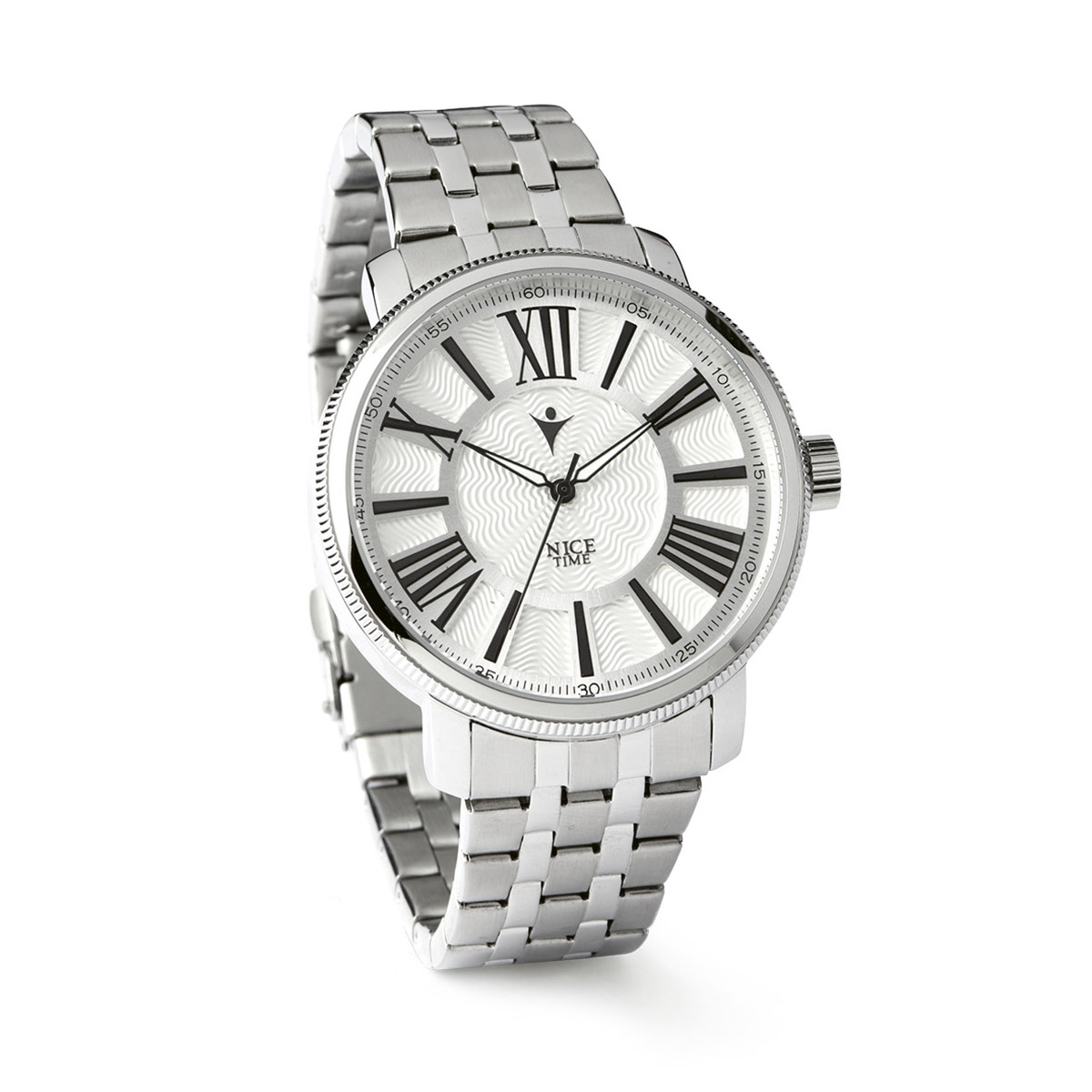 RELOJ CON CORREA DE ACERO INOXIDABLE COLOR PLATA Y CARÁTULA BLANCA